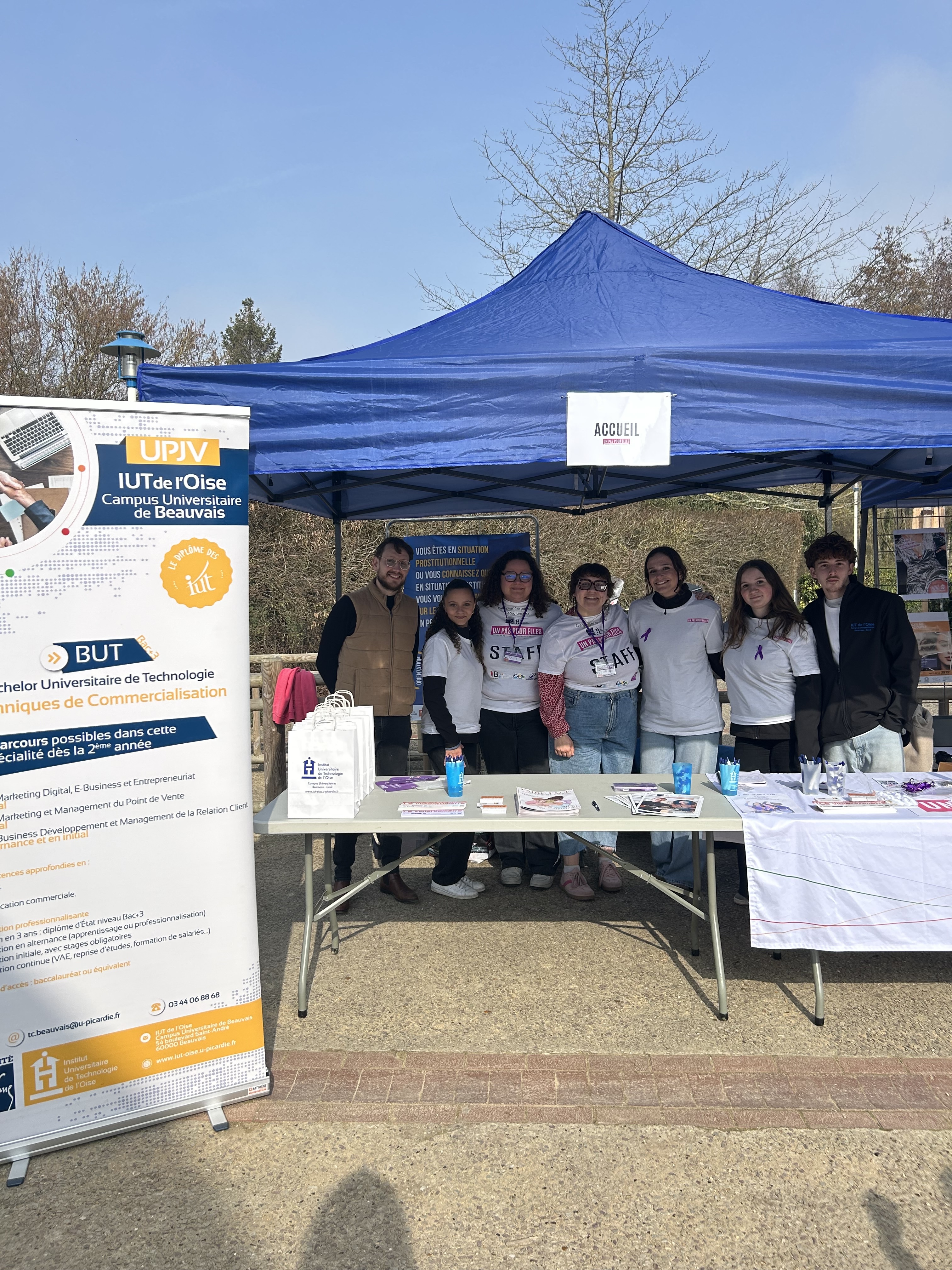 Derrière cet événement sportif et engagé, 4 étudiants de 2ᵉ année du BUT Techniques de Commercialisation : Elisa Ballut, Lola Le Calvez, Célia Lieuré et Lylian Inacio. Accompagnés par Loïc Perois, directeur des études de l’IUT de l’Oise, ils ont imaginé ce projet dans le cadre de leur formation, avec la volonté de sensibiliser le public aux violences faites aux femmes tout en créant un moment de rassemblement ouvert à tous.
