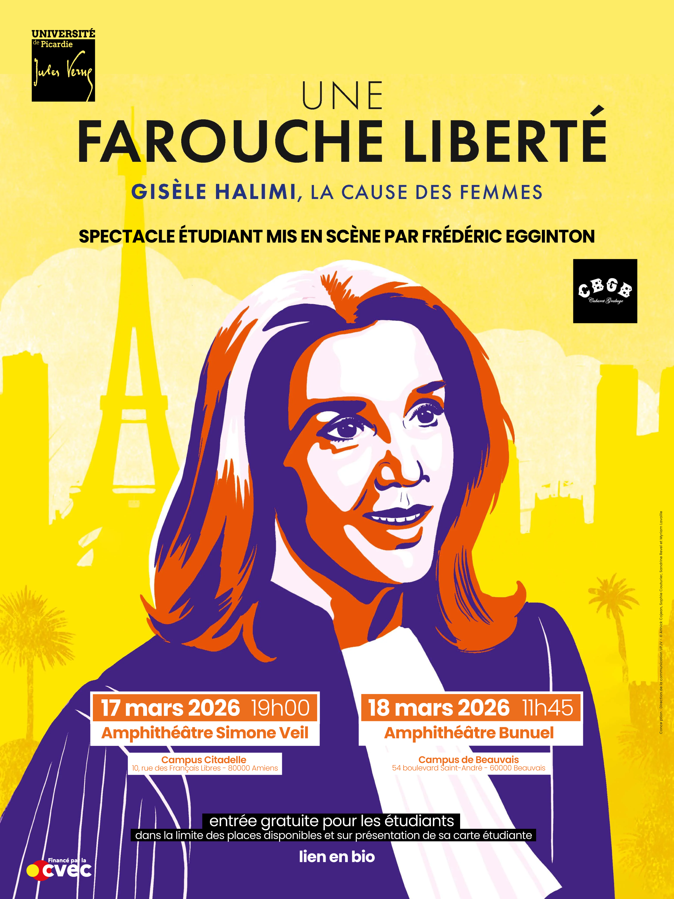 Le spectacle étudiant "Une farouche liberté - Gisèle Halimi, la cause des femmes" se tiendra dans :